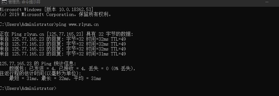 来自 1.1.1.1 的回复: 字节=32 时间=31ms TTL=49