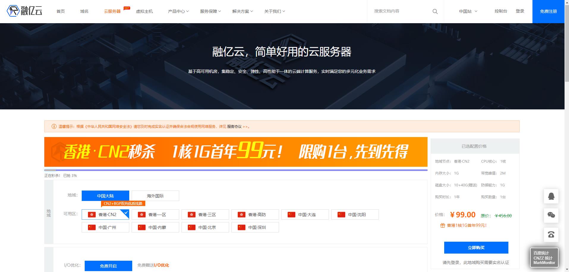 融亿云:香港云服务器CN2节点延长补贴通知 >>点击查看详情<<